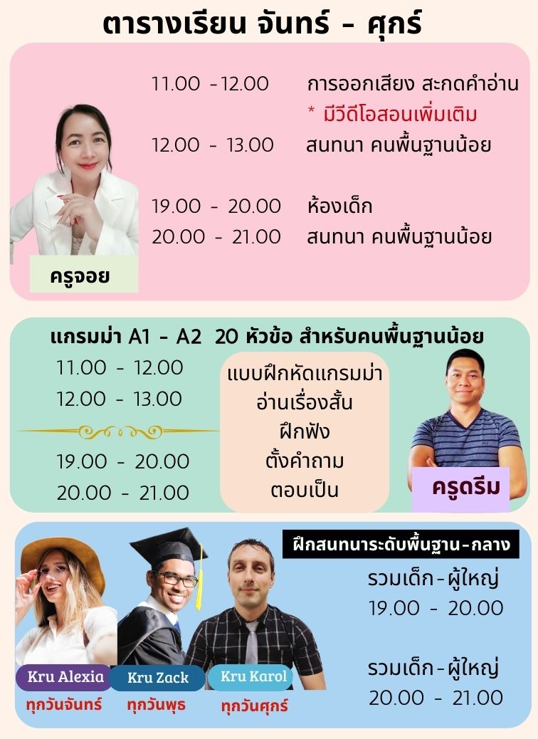 จันทร์-ศุกร์ 11.00-13.00 น. และ 19.00-21.00 น.