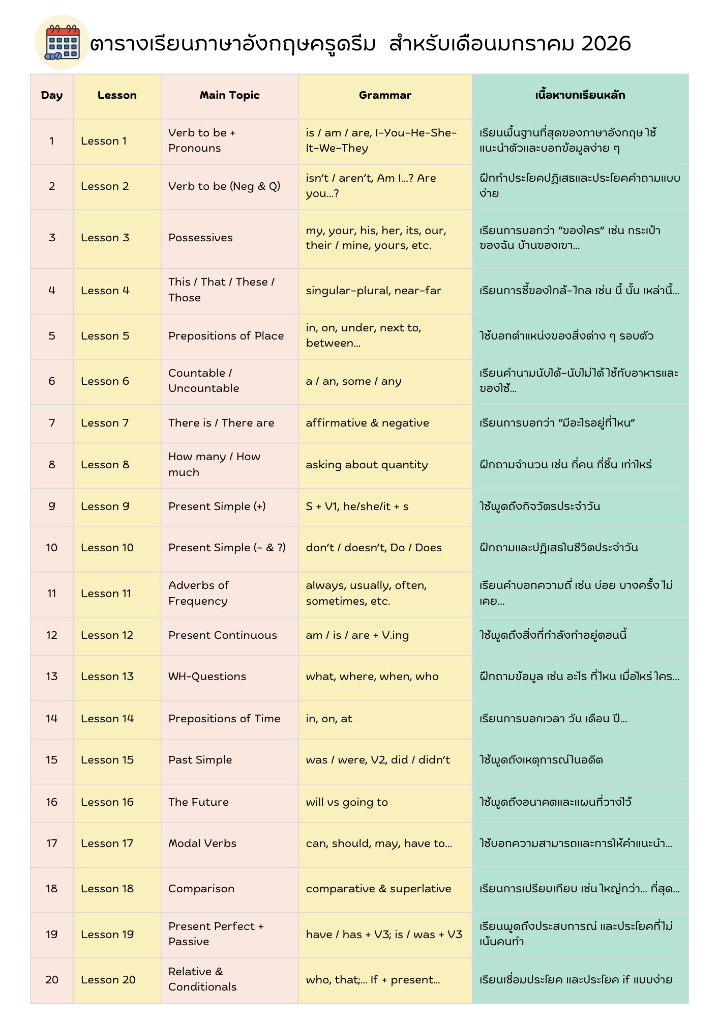 ตารางเรียนประจำเดือน